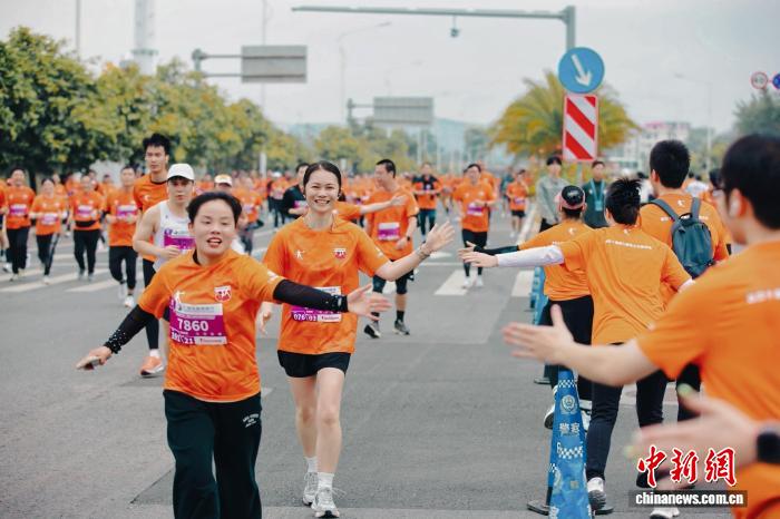 图为跑者正在火果补给站弥补能量。北宁市体育局 供图