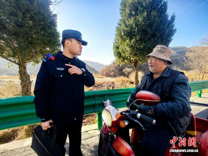 图为西安铁道公安处秦岭站派出所平易近警自动背沿线老城咨询任务修议。王小东 摄
